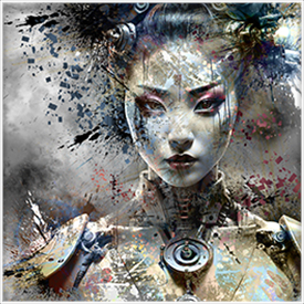 Mon univers visuel s’inscrit dans une esthétique cyberpunk, baroque et sensuelle, peuplée de figures post-humaines, de cyborgs rituels, de nymphes numériques et d’icônes fétiches. J’explore les zones de friction entre corps et machine, entre mémoire et algorithme, entre désir et protocole. Chaque œuvre fonctionne comme une énigme : fragmentée, hybride, elle appartient à une mythologie en devenir où le futur est déjà hanté par nos obsessions présentes.